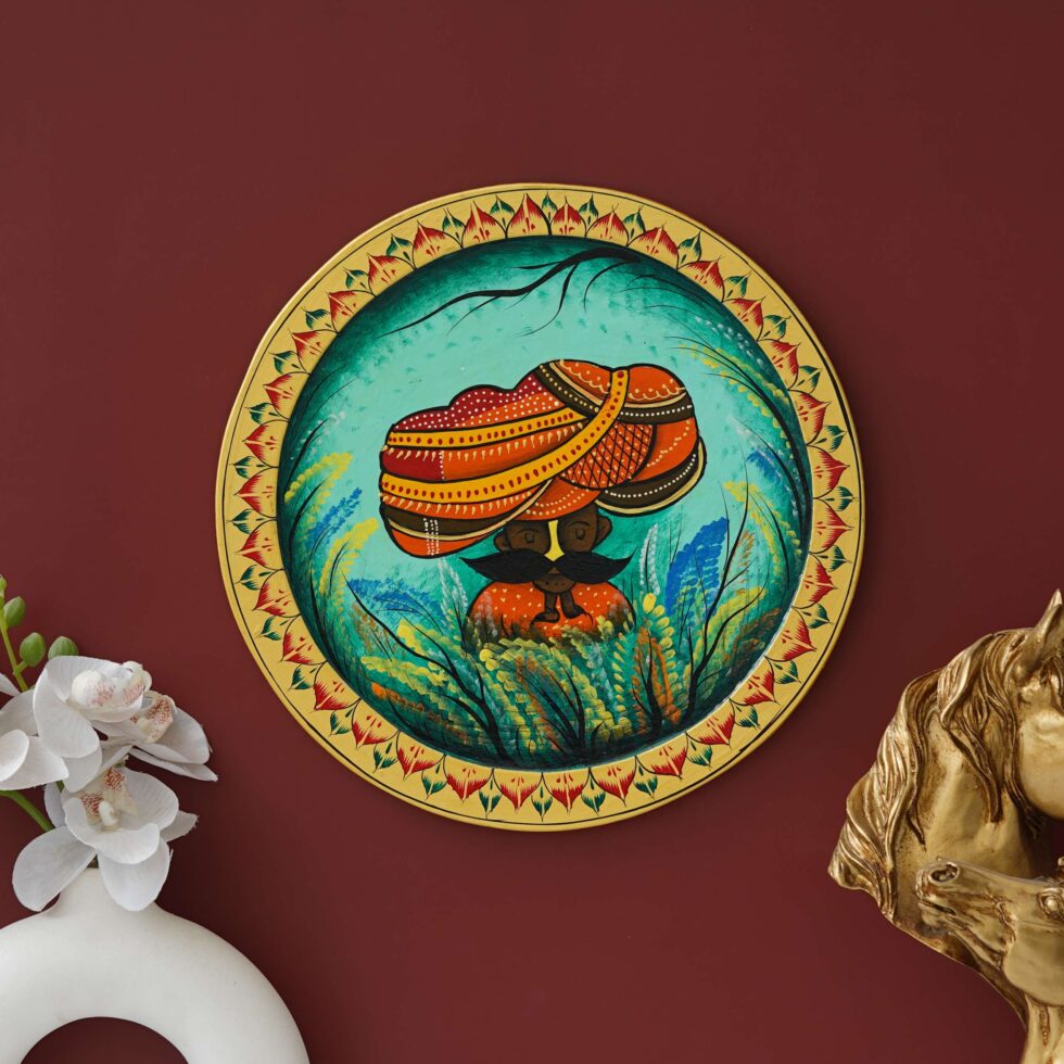 This antique pichwai depicts a holy man, possibly a rishi or a sage. The holy man has a long white beard and is wearing a simple dhoti. He is seated on a tiger skin, which is a symbol of his renunciation of worldly possessions. The painting is made with natural pigments on cloth, and it has a unique aged appearance.