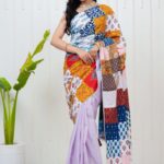 Women’s Multicolor Patchwork Printed Saree with Light Purple Base Blouse Piece Stylish Ethnic Wear